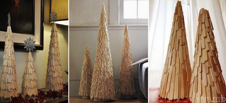 Einen ungewöhnlichen und schönen Weihnachtsbaum können Sie ganz leicht aus Eisstielen herstellen. Hierfür müssen Sie nur aus einer festen Pappe ein pyramidenförmiges Modell zuschneiden, das Sie daraufhin nach und nach mit den Eisstielen beschichten. Dabei entsteht ein wundervoller hölzerner Weihnachtsbaum, dem Sie mit weihnachtlichen Dekorationen wie Sternen oder Schneeflocken Leben einhauchen.