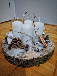 1. Hölzerner Adventskranz aus einem Baumstamm