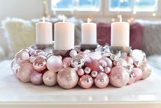 Haben Sie Zuhause viele Christbaumkugeln und wissen nicht, wie Sie diese verwenden könnten? Warum nicht einen Adventskranz aus Christbaumkugeln daraus gestalten? Hierfür reicht es, dass Sie sich einen Kranz aus Polyester besorgen, auf den Sie mit einer Heißklebepistole die Weihnachtsbaumkugeln in verschiedenen Größen kleben. Darauf platzieren Sie nur noch die Weihnachtskerzen – so einfach und doch so trendy!