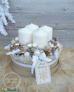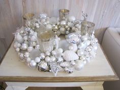 Für einen luxuriösen und stilvollen Adventskranz wählen Sie die Farbkombination weiß und gold. Diesen glamourösen Adventskranz wird sicher Niemand übersehen.
