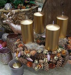 Die ursprünglichen Adventskränze waren schlicht und bestanden aus natürlichen Materialien. Gestalten auch Sie so einen natürlichen Adventskranz aus einem Baumstamm – dabei kann der Baumstamm verschiedenste Formen haben. Wie Sie ihn nun optimal dekorieren? Hierfür einfach die vier Kerzen aufkleben und ihn mit Tannenzapfen, Tannenzweigen, Weihnachtskugeln oder anderen Dekorationen schmücken.