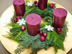 Für alle, die gerne Farbe bekennen, bietet sich die Farbe lila perfekt für einen Adventskranz an. Die Farbe lila lässt sich optimal mit der Farbe rosa kombinieren und zusammen mit dem grünen Farbton des Kranzes entsteht so ein stimmiges Gesamtbild.
