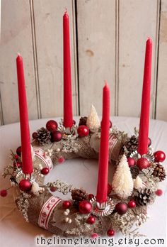 Die rote Farbe gehört ganz klar zu Weihnachten. Ein traditionell roter Adventskranz wird in jedem Raum zu einem Hingucker.