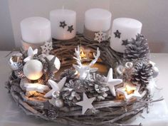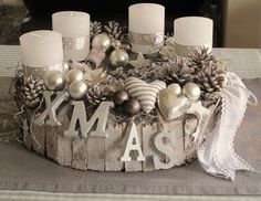 Stilvoll und luxuriös wirkt der moderne Adventskranz in silberner Farbe. Die schönen Reflektionen und Lichtspiele der Farbe verleihen dem Kranz das gewisse Etwas.