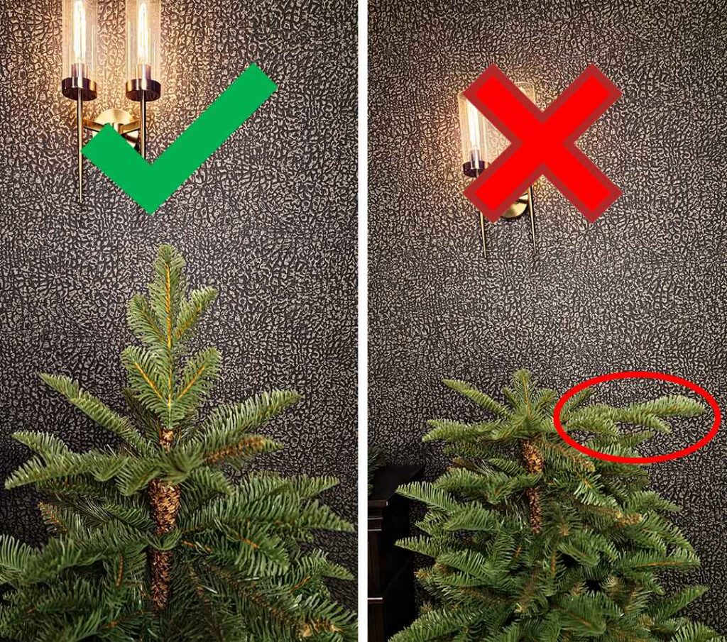 Schieben Sie den längsten Zweig an der Baumspitze nach oben, um die Baumspitze zu bilden.