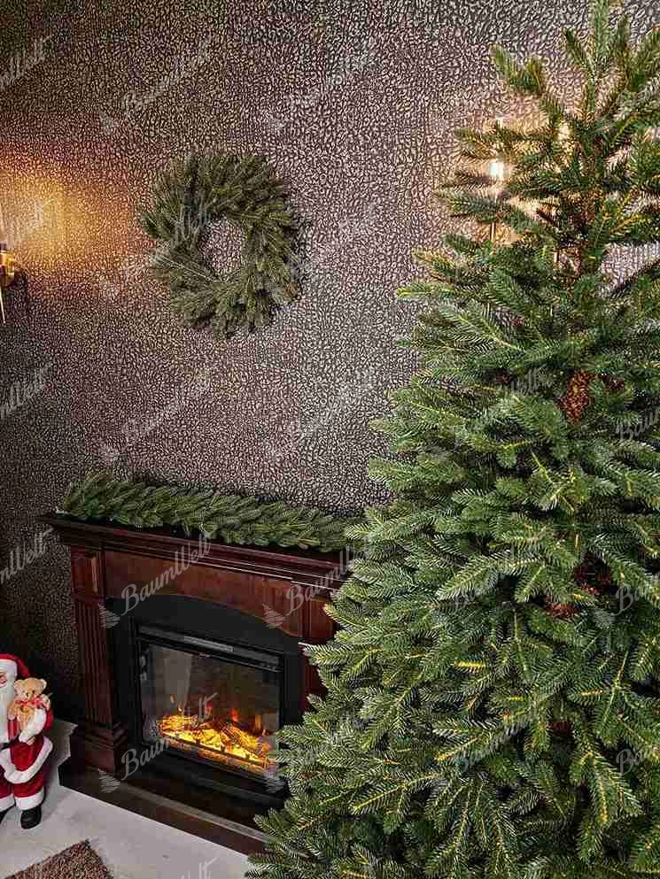 Dieser Baum sieht aus, als käme er direkt aus dem Wald. Mit seinen dichten, dunkelgrünen Nadeln und der majestätischen Form ahmt er den natürlichen Look perfekt nach.