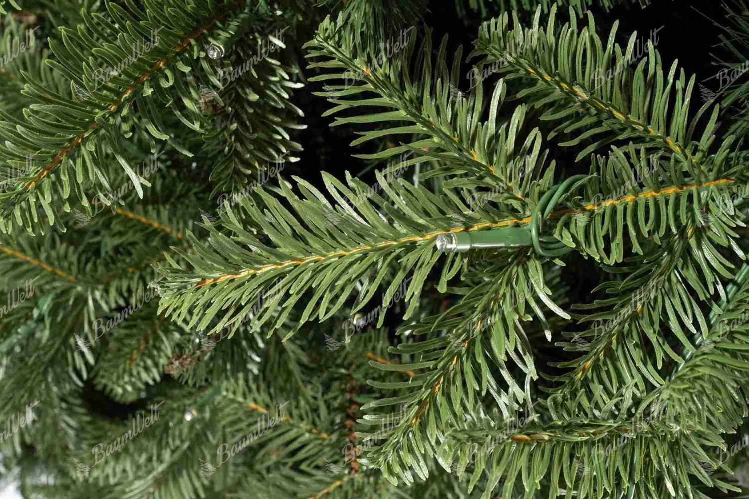 Die Kombination aus 3D-Tannennadeln an den Enden der Zweige und klassischen PVC-Nadeln im Inneren des Baumes verleiht ihm ein realistisches Aussehen, sodass er von einem lebenden Baum nicht zu unterscheiden ist.