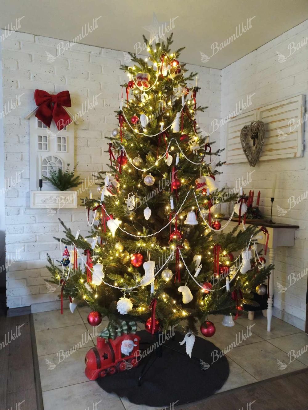 Neuheit der Saison 2025 – Der künstliche Weihnachtsbaum 3D Irische Fichte ist ein eleganter Baum, der auf den ersten Blick durch seine dunkelgrünen Fichtennadeln besticht, die ihn wie einen echten Baum aus dem Wald wirken lassen.