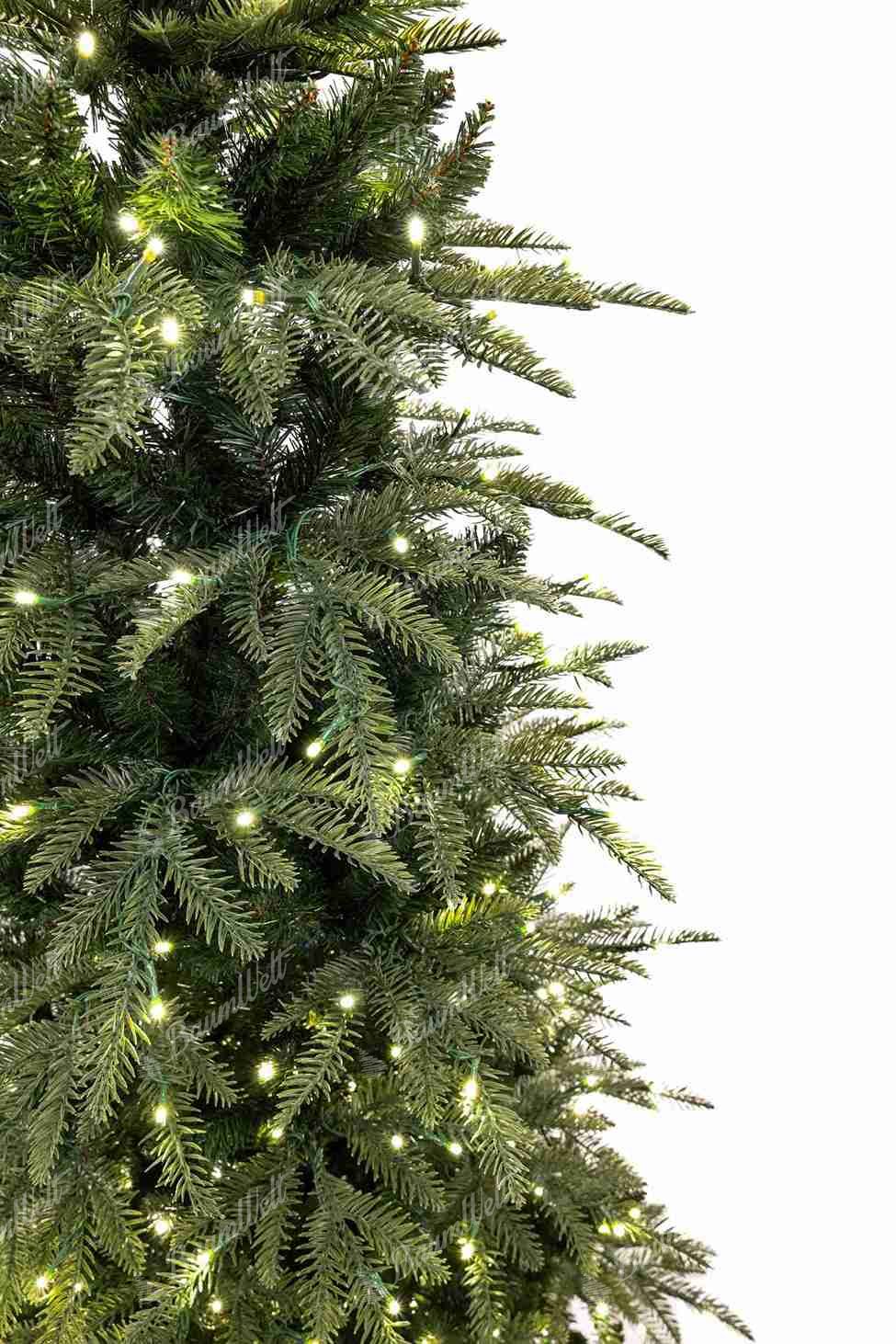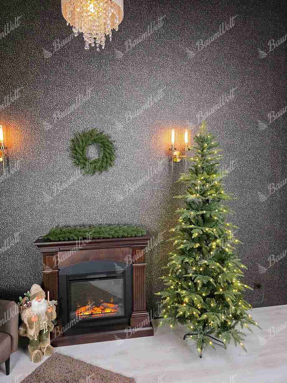Die Neuheit für die Saison 2025 – der Weihnachtsbaum 3D Tanne schlank ist ein Baum mit naturgrünen Nadeln und einem realistischen Aussehen, das durch leicht ausgefranste Zweige ergänzt wird.