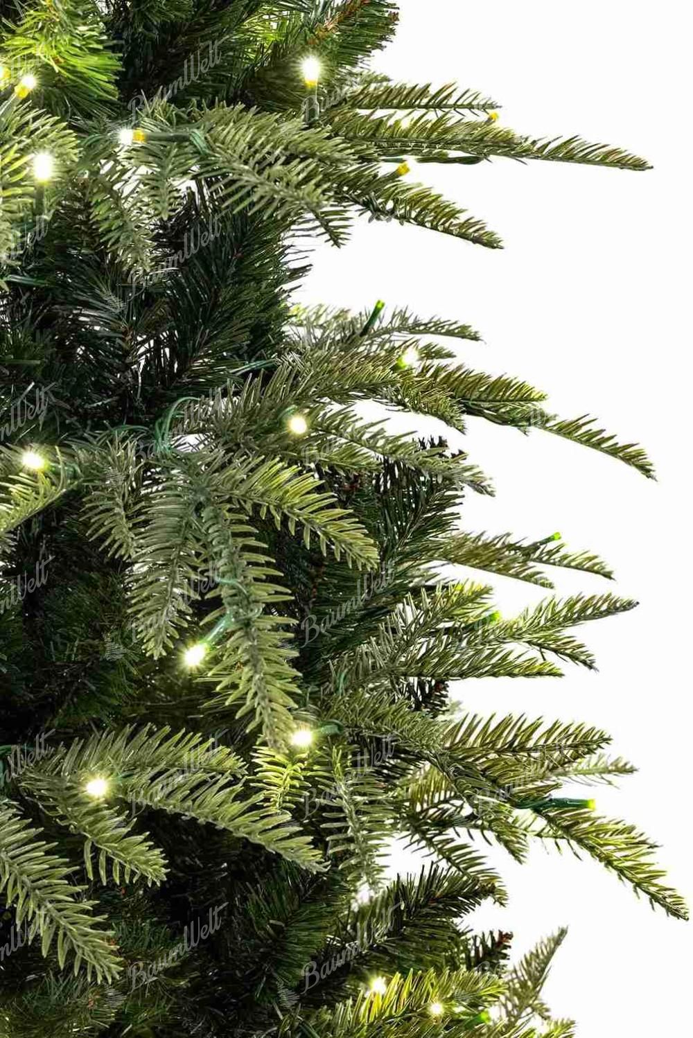 Der Baum besteht aus einer Kombination aus 3D-Nadeln am Rand und PVC-Zweigen im Inneren, die ihm eine vollere Form verleihen.
