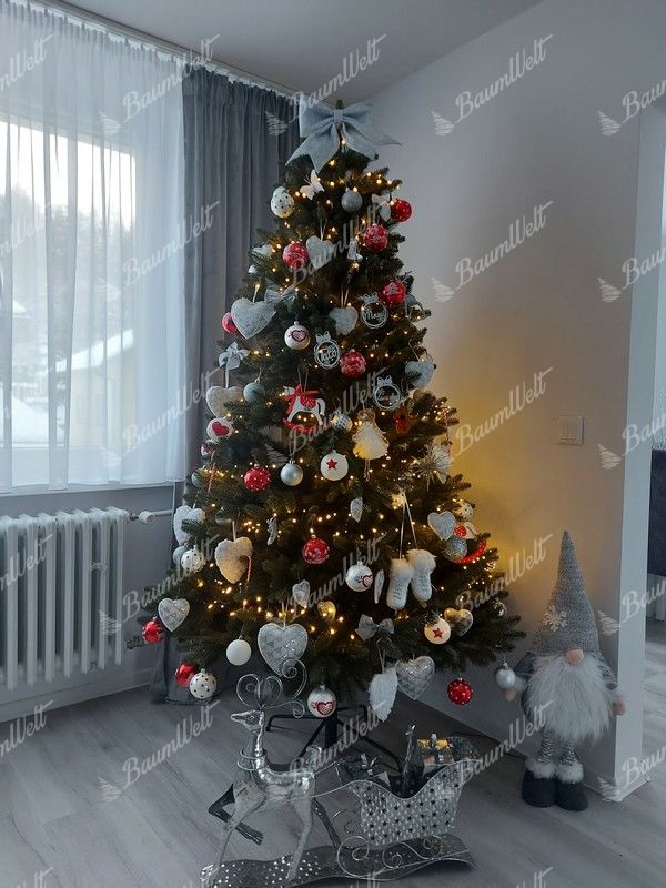 Bei der Herstellung unserer 3D-Zweige werden nur hochwertige PE-Materialien verwendet. Der Baum wird in der Mitte mit klassischen PVC-Nadeln verdickt. Eine feste Eisenkonstruktion und ein Metallständer sind für alle von unseren angebotenen Weihnachtsbäumen inklusive.