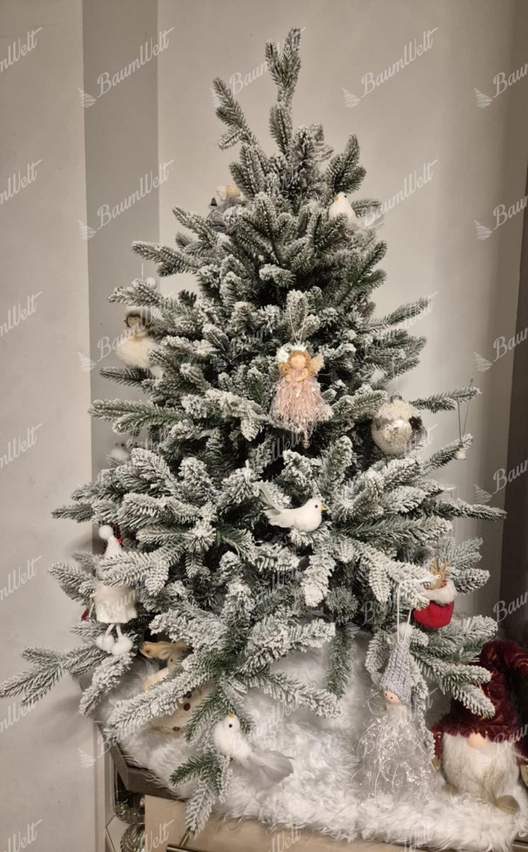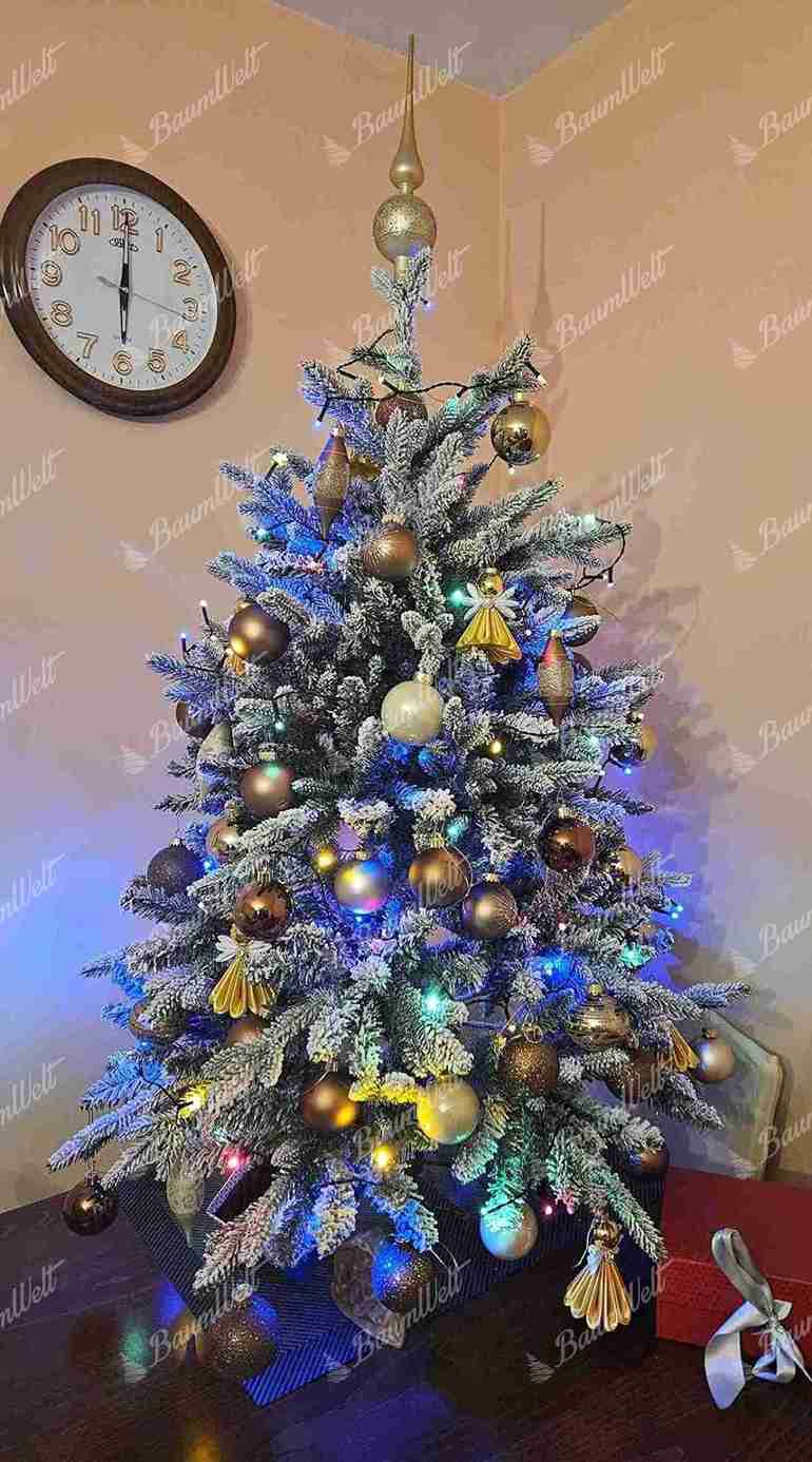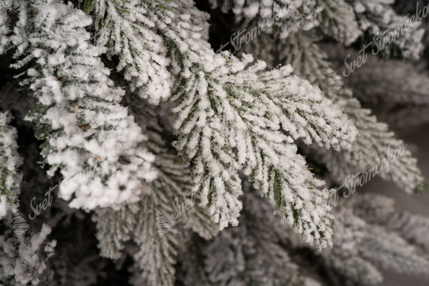 Die 3D-Nadeln um den gesamten Umfang des Baumes werden durch klassische PVC-Nadeln ergänzt, die dicht beschneit sind. Die moderne Applikation von Kunstschnee auf den Baum garantiert, dass der künstliche Schnee nicht abfällt. Der Baum besteht aus einer festen Eisenkonstruktion und ein stabiler Metallständer ist Bestandteil der Verpackung.