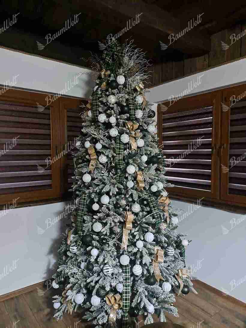 Künstlicher Weihnachtsbaum 3D Königsfichte hat ein einzigartiges eisiges Aussehen. Ihre weiß-grünlichen Zweige zaubern eine königlich-eisige Weihnachtsstimmung. Die 3D-Zweige werden durch klassische PVC-Zweige, die mit Kunstschnee beschneit sind, ergänzt, wodurch der Baum dichter wirkt.