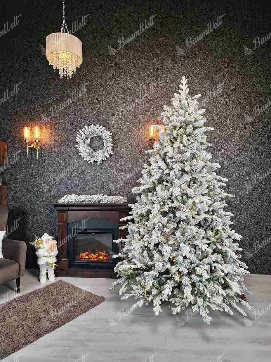 Mit Hilfe modernster Technik wird der gesamte Baum nach und nach mit Kunstschnee überzogen, der kaum vom Baum fällt. Beim ersten Zersetzen der Zweige werden die nicht eingeschlossenen Schneebestandteile wieder freigesetzt. Das ursprüngliche Aussehen wird auch durch die dicht mit Schnee bedeckten Zapfen erreicht, die auf den Baum gelegt werden.