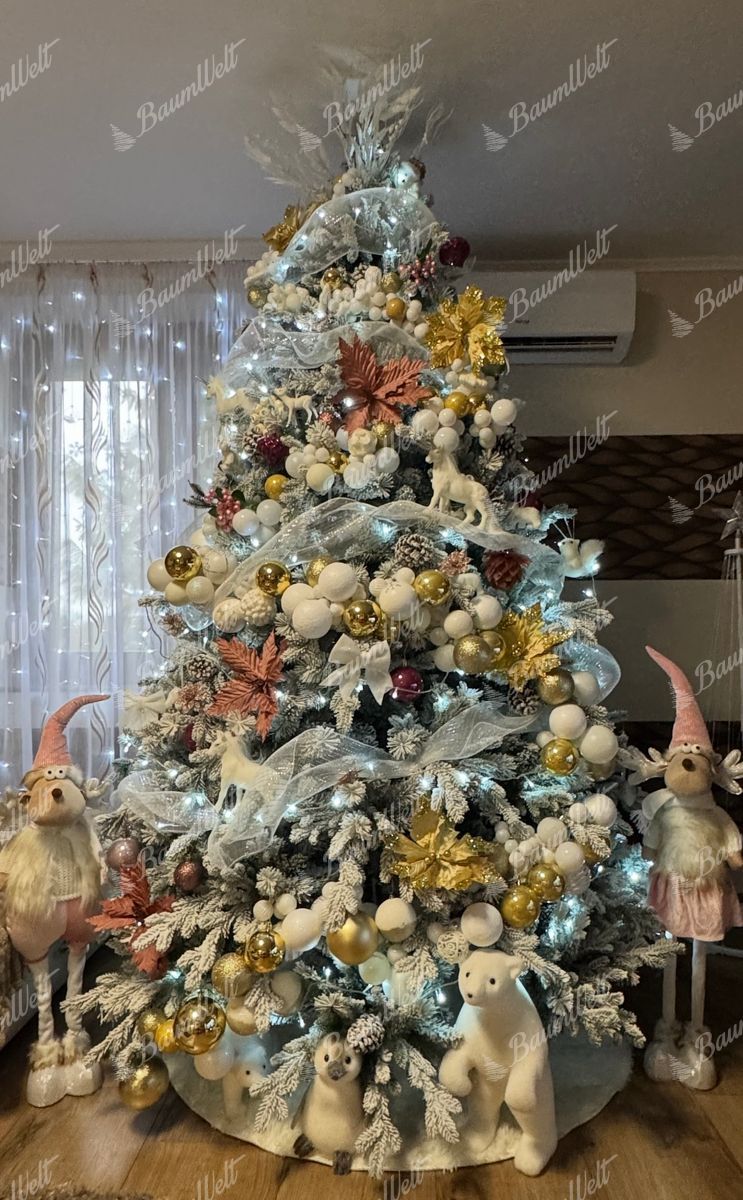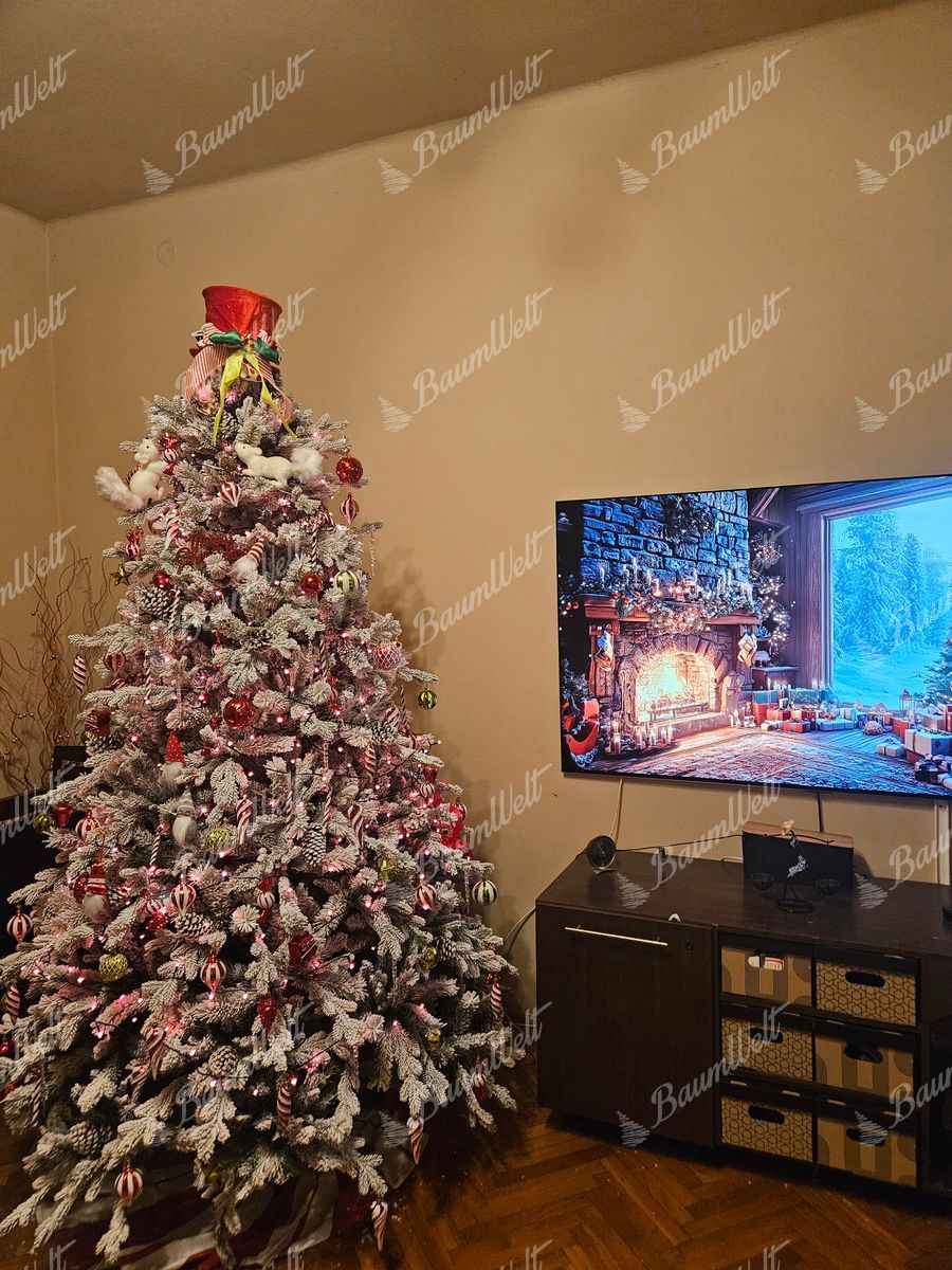 Der stark verschneite künstliche Weihnachtsbaum 3D Polarfichte hat eine einzigartige Winteroptik, die ein perfekt verschneites Weihnachtsfest in jedes Haus zaubert. Die 3D-Zweige rund um den Baum werden durch die klassischen PVC-Zweige ergänzt, die ebenfalls dicht mit Schnee bedeckt sind.