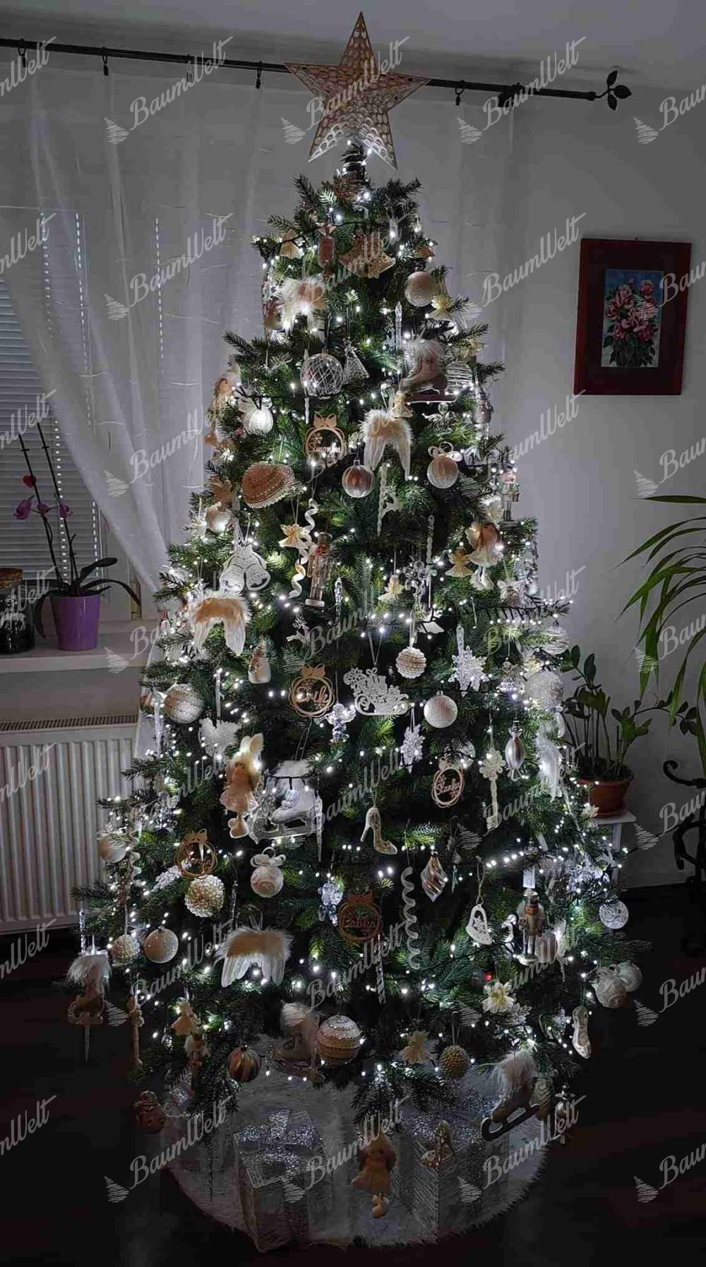 Der gesamte Baum ist aus hochwertigen Materialien hergestellt. Die perfekte Form des Baumes wird durch das Regenschirm-Faltsystem gewährleistet, das die Zweige an der richtigen Stelle platziert. Ein stabiler Metallständer ist im Lieferumfang enthalten.