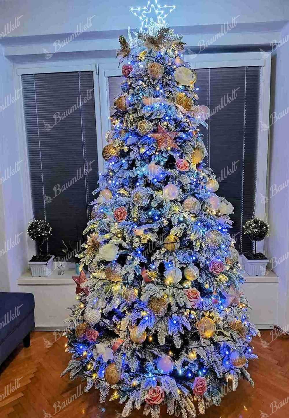 Der stark verschneite Weihnachtsbaum 3D Tanne Alabaster ist ein luxuriöser Baum, der mit seinem verschneiten, winterlichen Aussehen die perfekte märchenhafte Weihnachtsstimmung in jeden Raum zaubert. Dieser dicht verschneite Baum hat lange tannengrüne 3D-Zweige, die sich sanft unter einer dicken Kunstschneeschicht abzeichnen und dem Baum ein einzigartiges Aussehen verleihen.