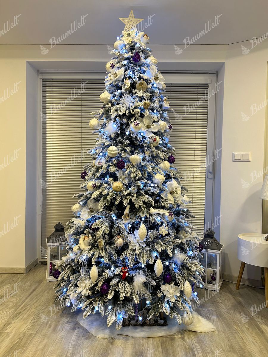 Das Innere des Baumes wird mit klassischen, schneebedeckten PVC-Zweigen ergänzt, was für eine perfekt dichte Baumform sorgt. Bei der Herstellung des Baumes werden PE- und PVC-Materialien höchster Qualität verwendet, so dass er Ihnen jahrzehntelang dienen kann.