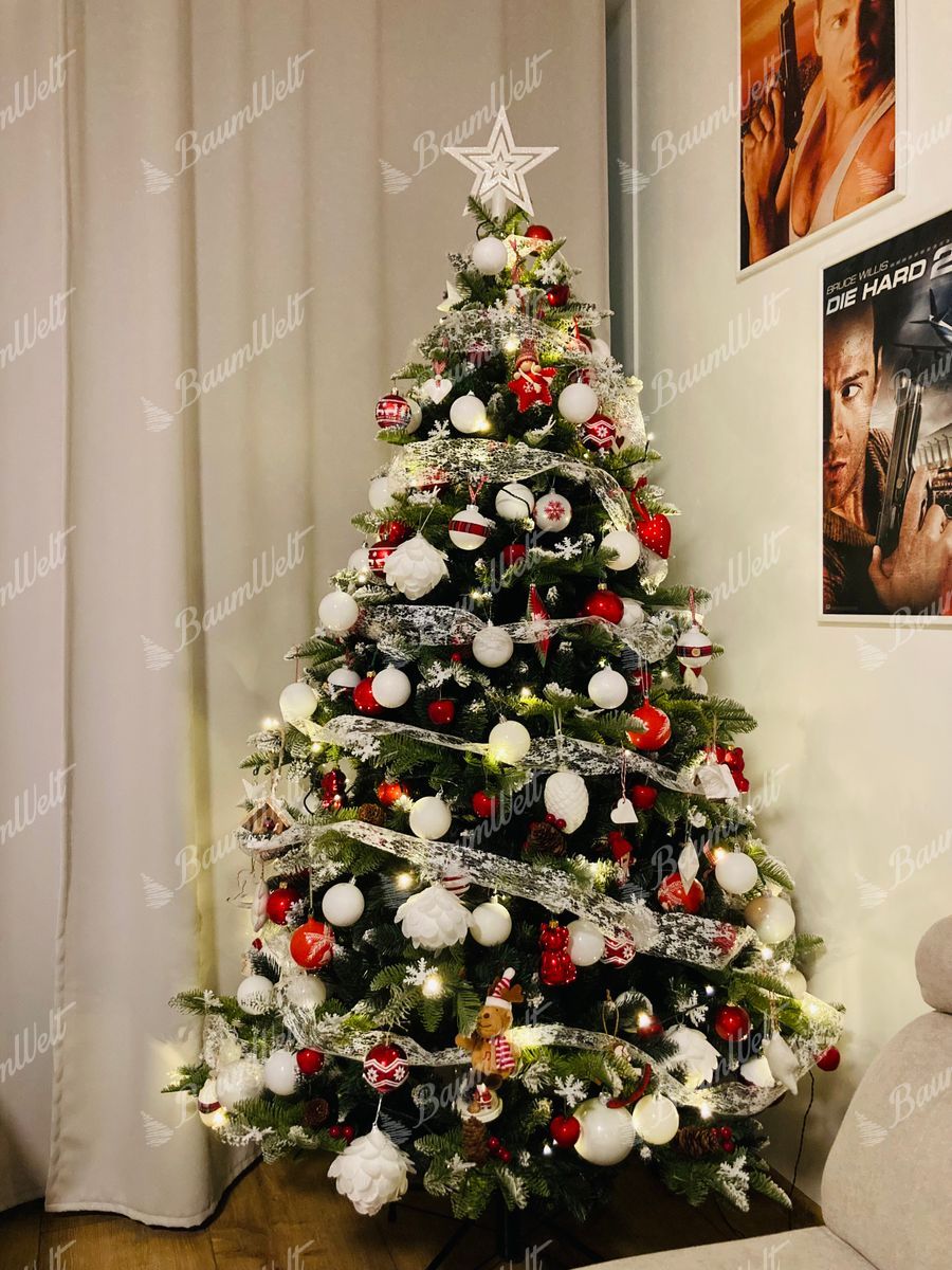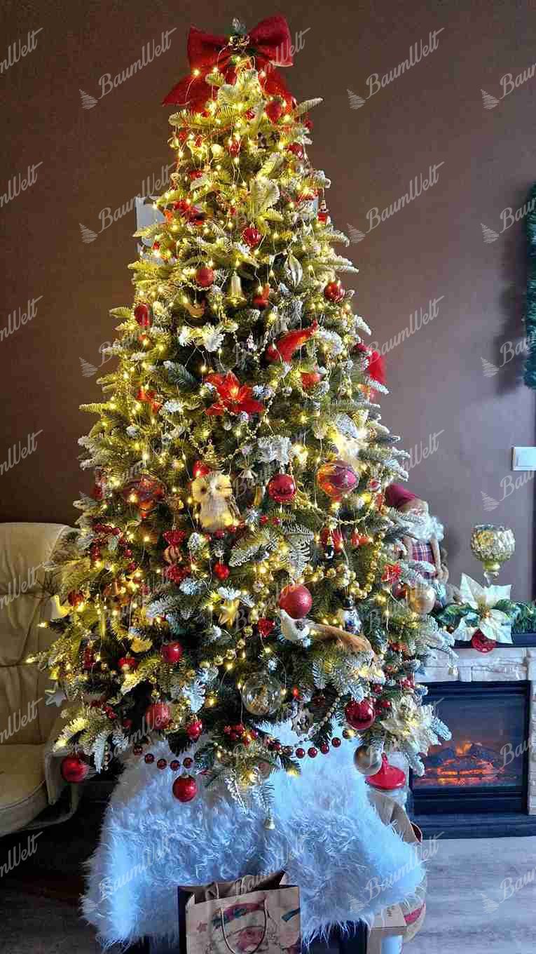 Der Weihnachtsbaum wird neben den 3D-Nadeln durch klassische PVC-Nadeln ergänzt, die ebenfalls an den Zweigenden mit Kunstschnee bedeckt sind und so perfekt einen echten, schneebedeckten Baum imitieren. Die hochwertige Eisenkonstruktion und ein stabiler Eisenständer sind Bestandteile der Verpackung.