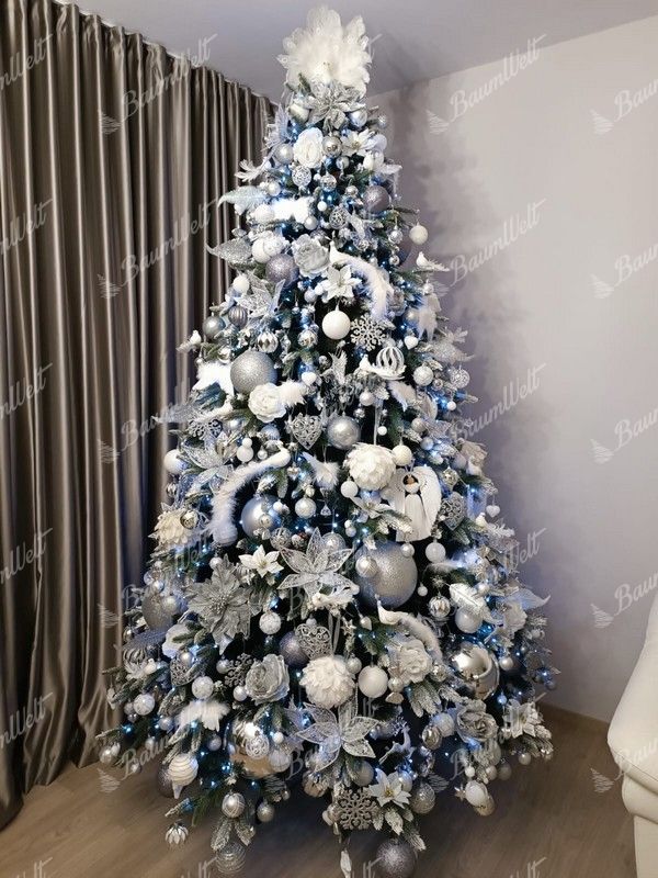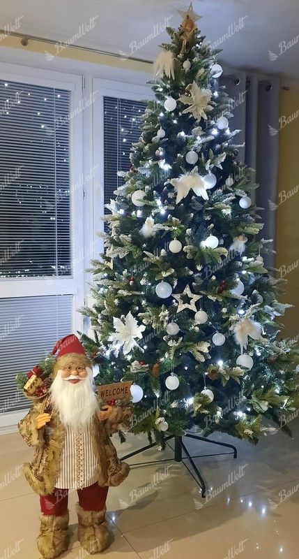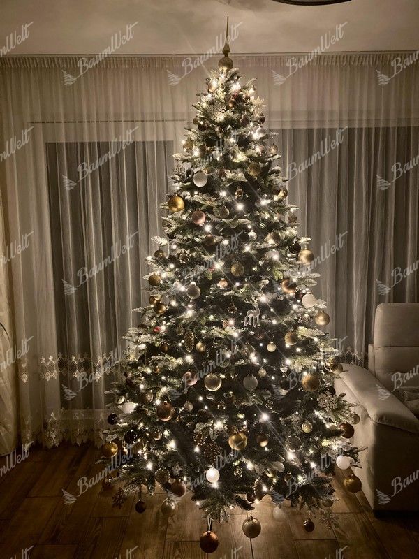 Der Weihnachtsbaum wird neben den 3D-Nadeln durch klassische PVC-Nadeln ergänzt, die ebenfalls an den Zweigenden mit Kunstschnee bedeckt sind und so perfekt einen echten, schneebedeckten Baum imitieren. Die hochwertige Eisenkonstruktion und ein stabiler Eisenständer sind Bestandteile der Verpackung.