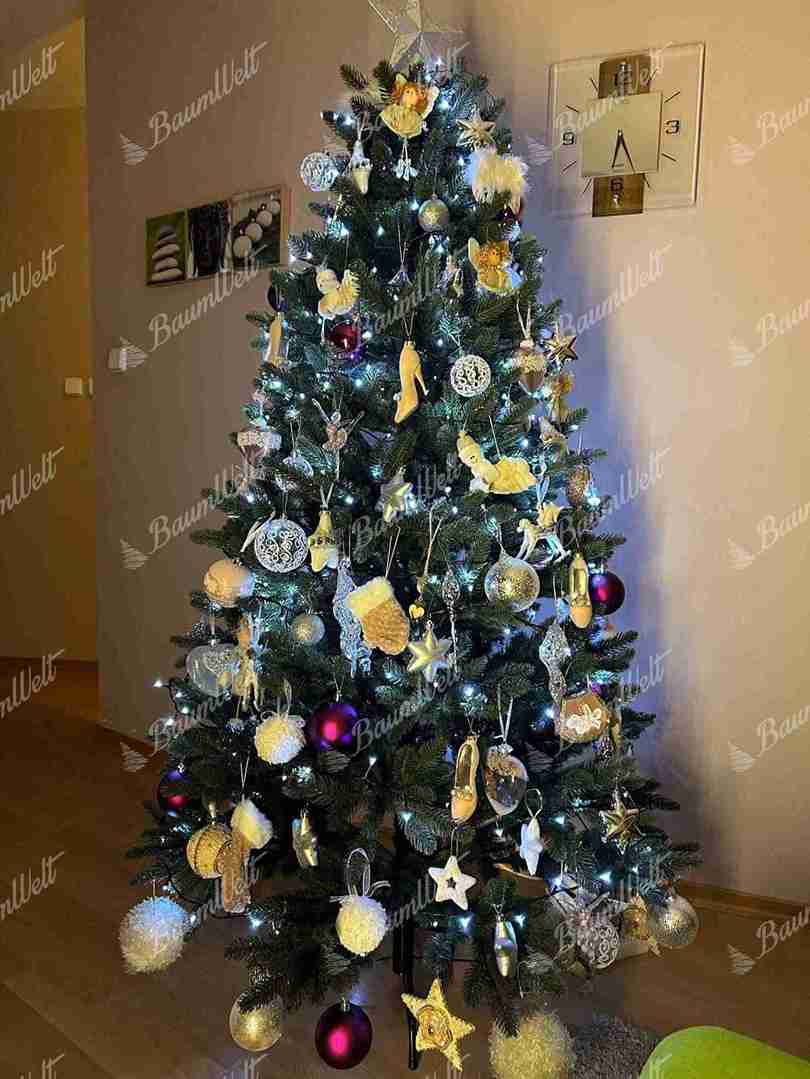 Bei der Herstellung unserer 3D-Zweige werden nur hochwertige PE-Materialien verwendet. Der Baum wird in der Mitte mit klassischen PVC-Nadeln ergänzt. Die feste Eisenkonstruktion und ein Metallständer sind bei allen von unseren angebotenen Weihnachtsbäumen inklusive.