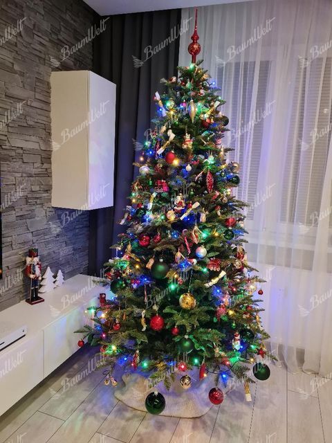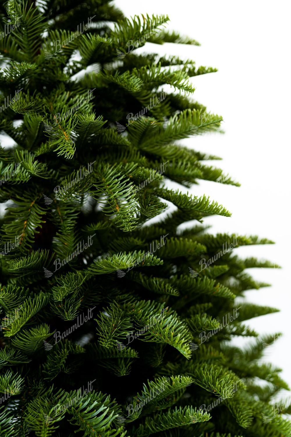 Künstlicher Weihnachtsbaum FULL 3D Kaukasus-Tanne besteht aus einer Vielzahl von unverwechselbaren 3D-Tannenzweigen und wirkt dadurch sehr realistisch. Die Nadeln des Baumes sind blassgrün und zeichnen sich durch die traditionelle Tannenform aus.