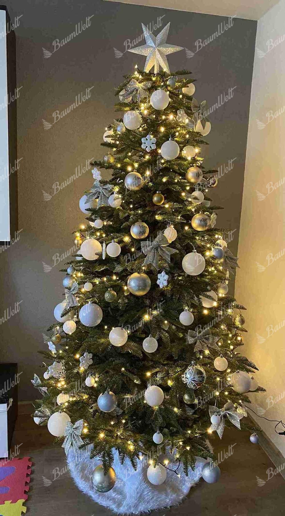 Der Baum besteht aus hochwertigen Materialien. Dank des Regenschirm-Faltsystems können Sie ihn ganz einfach in seine perfekte Form aufklappen. Ein stabiler Metallständer ist Bestandteil der Verpackung.