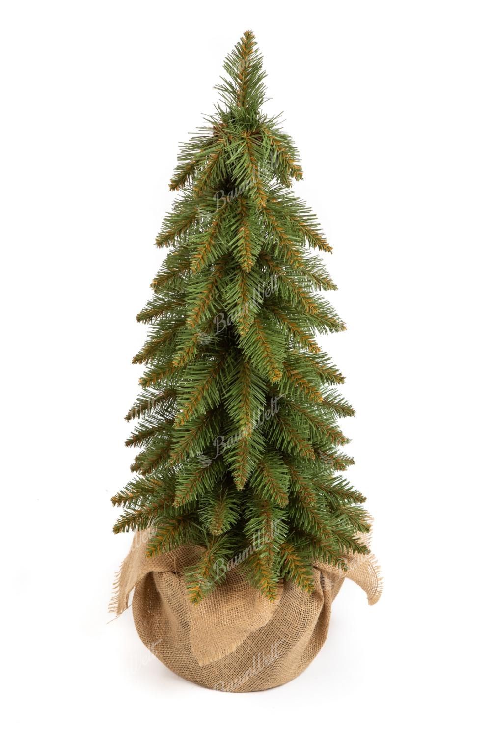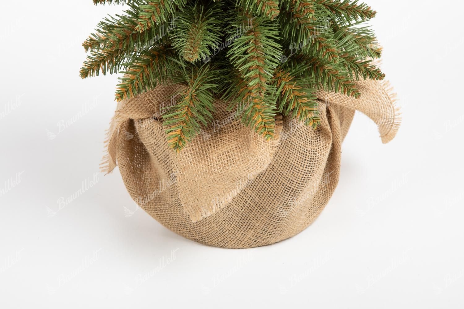 künstlicher Weihnachtsbaum, Höhe 65cm, Breite 27cm, blassgrüne Fichtennadeln, Nadeltyp PVC, Ausführung – dicht, Topf aus Sackleinen, Spitzenlänge – 10 cm, Anzahl der Teile –1