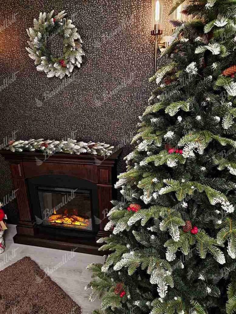 Mit seinem stilvollen Design fällt der Weihnachtsbaum 3D Tanne mit Kunstschnee ins Auge, der mit seinen verschneiten Astenden, die zusätzlich durch Tannenzapfen und rote Beeren ergänzt werden, außergewöhnlich ist. Für uns ist er definitiv einer der modernen Bäume.