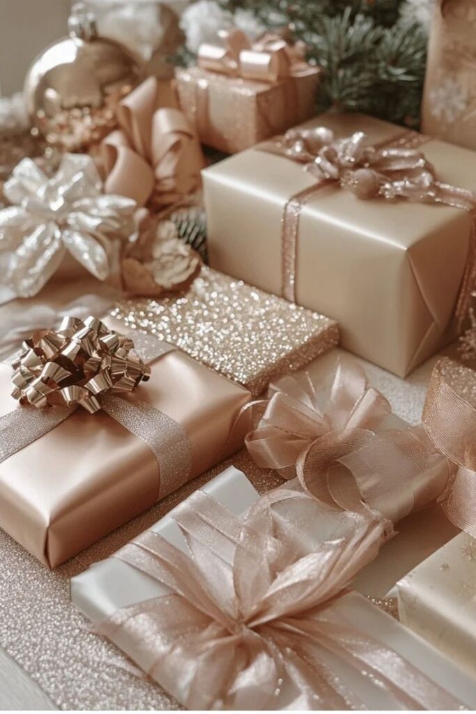 Sie möchten, dass Ihre Geschenke unter dem Baum wie aus einer Boutique aussehen? Setzen Sie auf glänzendes Papier, Satinbänder und feine Details. Eleganz bedeutet nicht viele Verzierungen, sondern Stil und Harmonie.