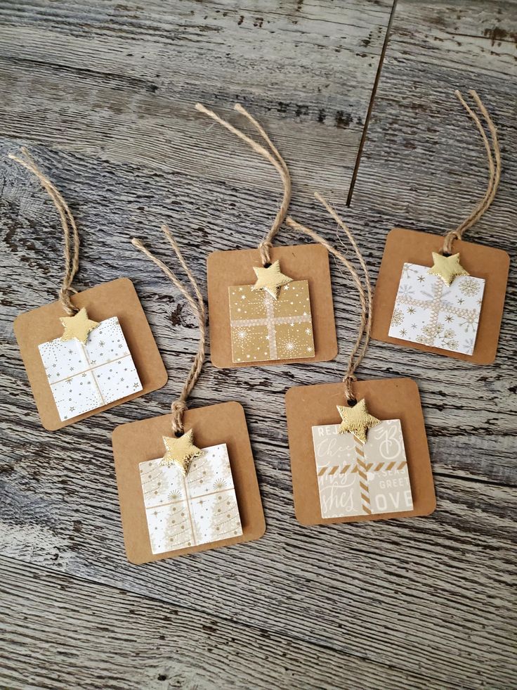 Wählen Sie Anhänger, die farblich und stilistisch zur Verpackung passen: Papieranhänger, Holzanhänger für den Naturlook oder sogar Anhänger mit einem Foto des Empfängers.